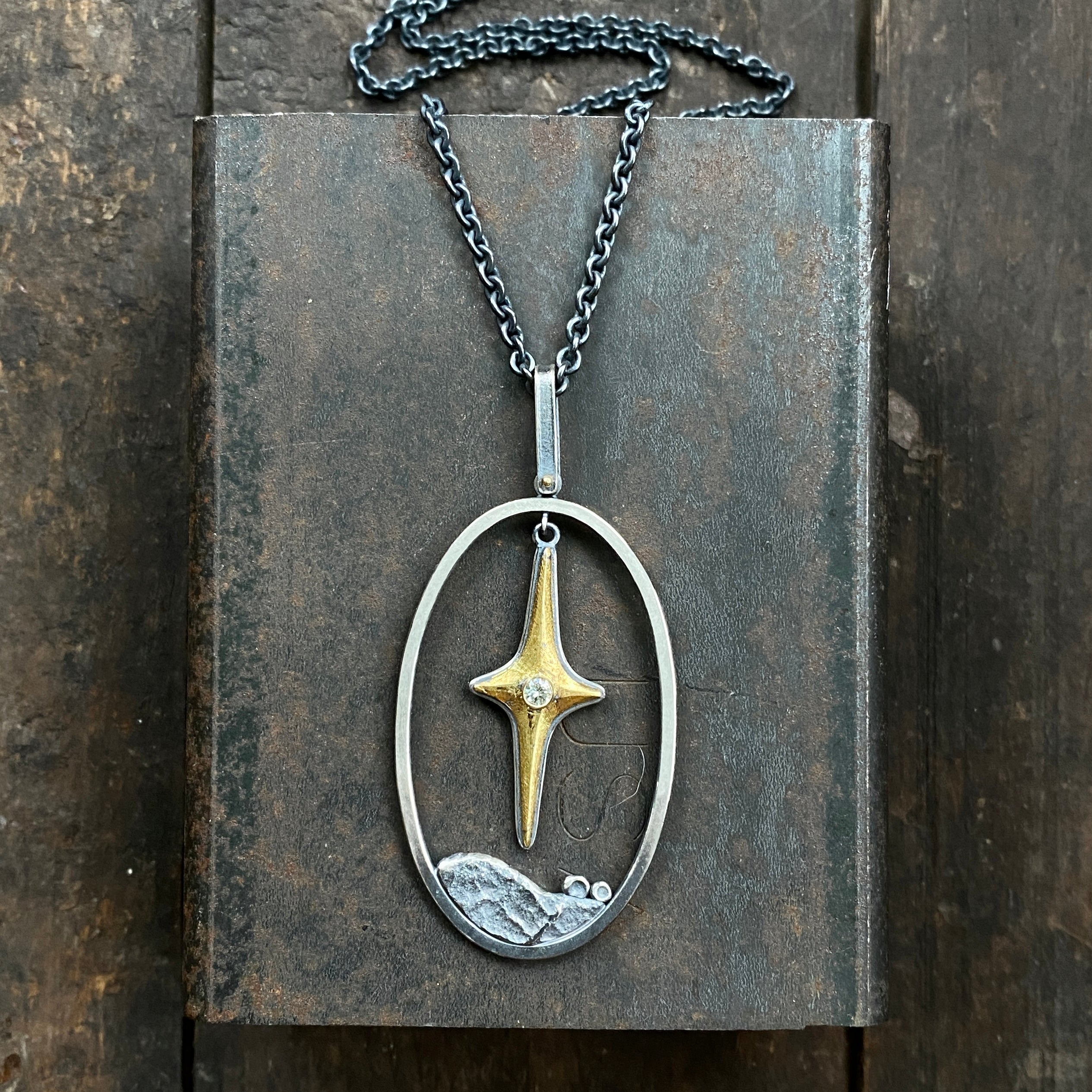 Lunar Terrain Pendant with Gilded North Star and Diamond