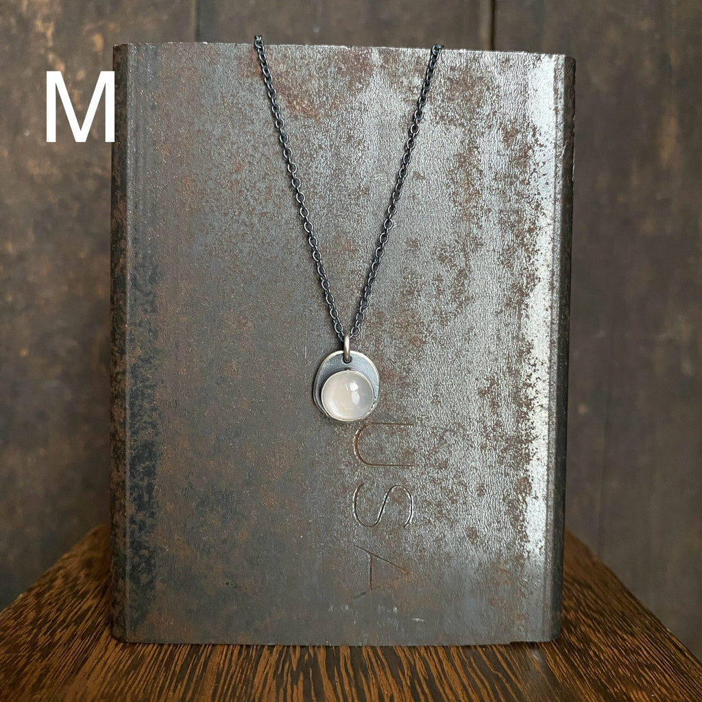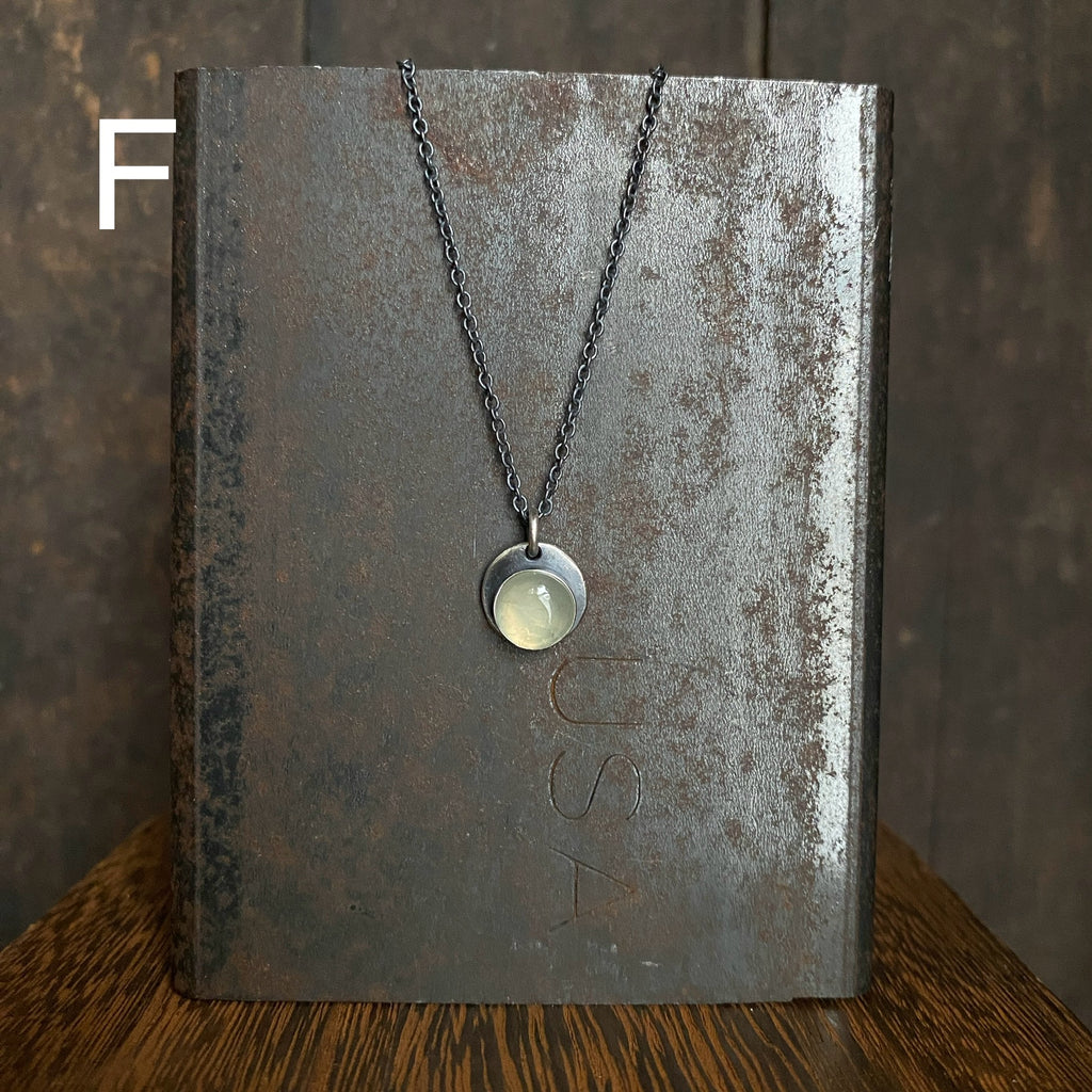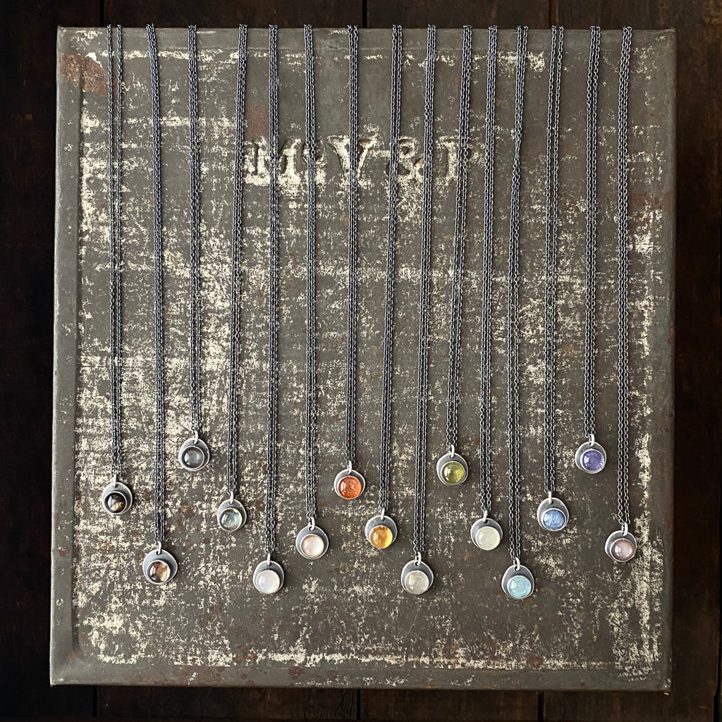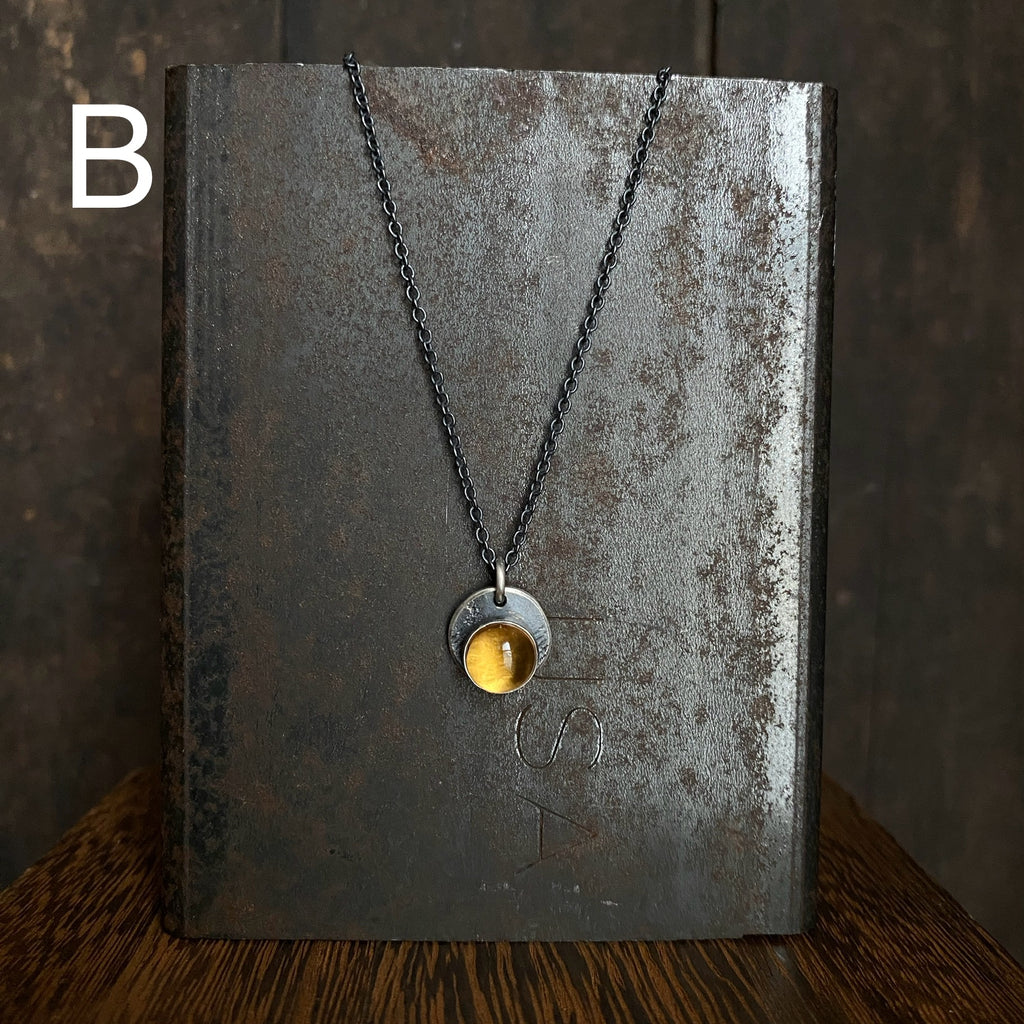 Just a simple gemstone pendant crafted from recycled sterling silver. A staple for any jewelry collection. The gemstone cabochon measures 8mm in diameter.