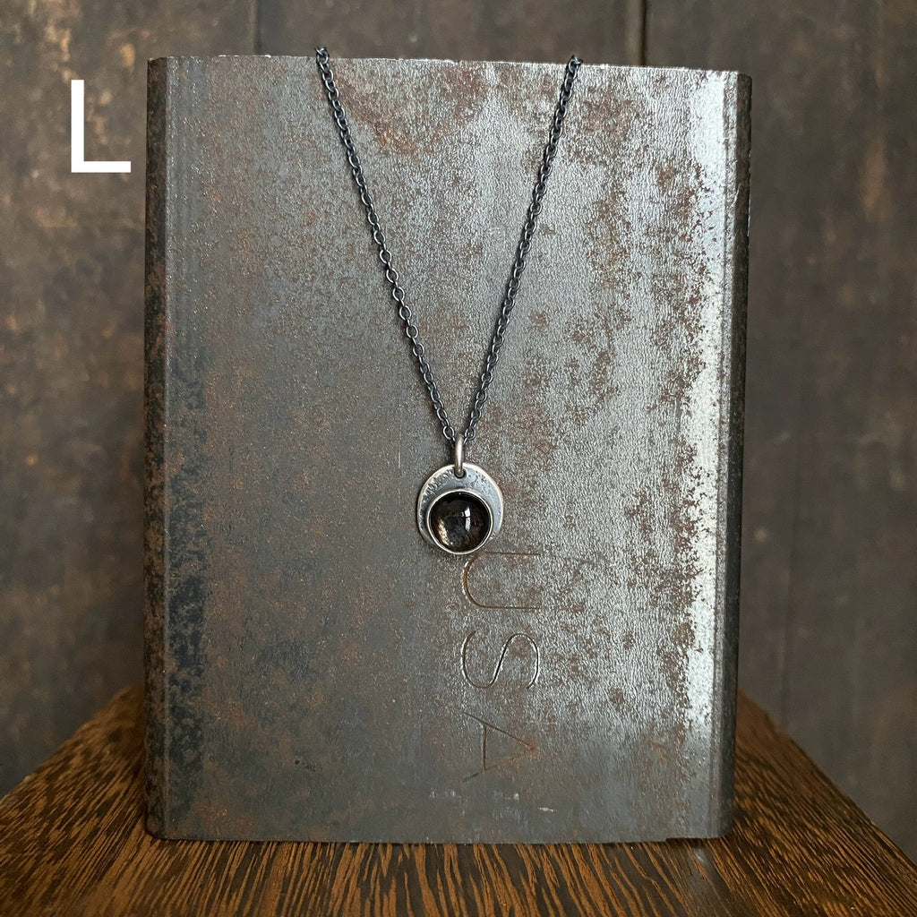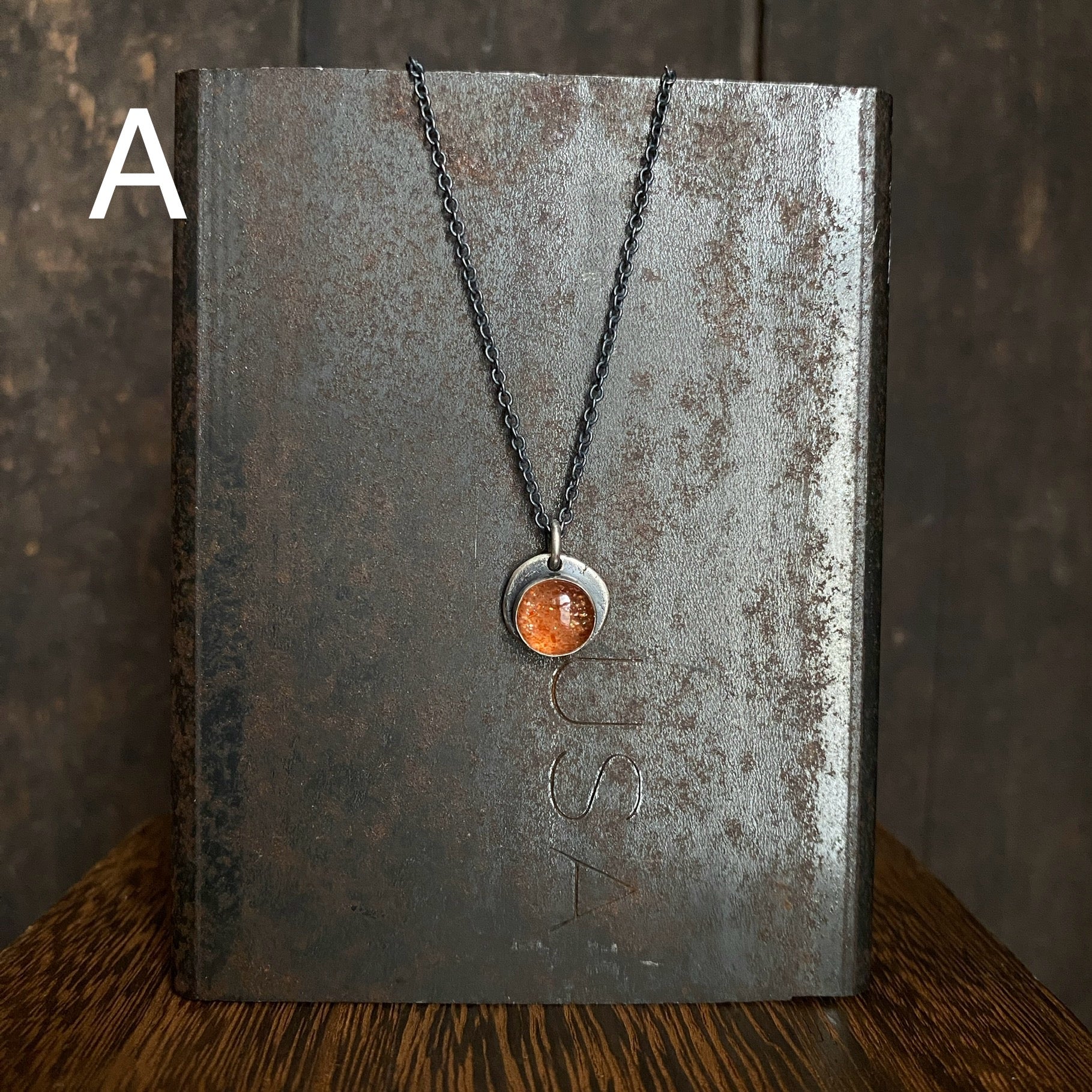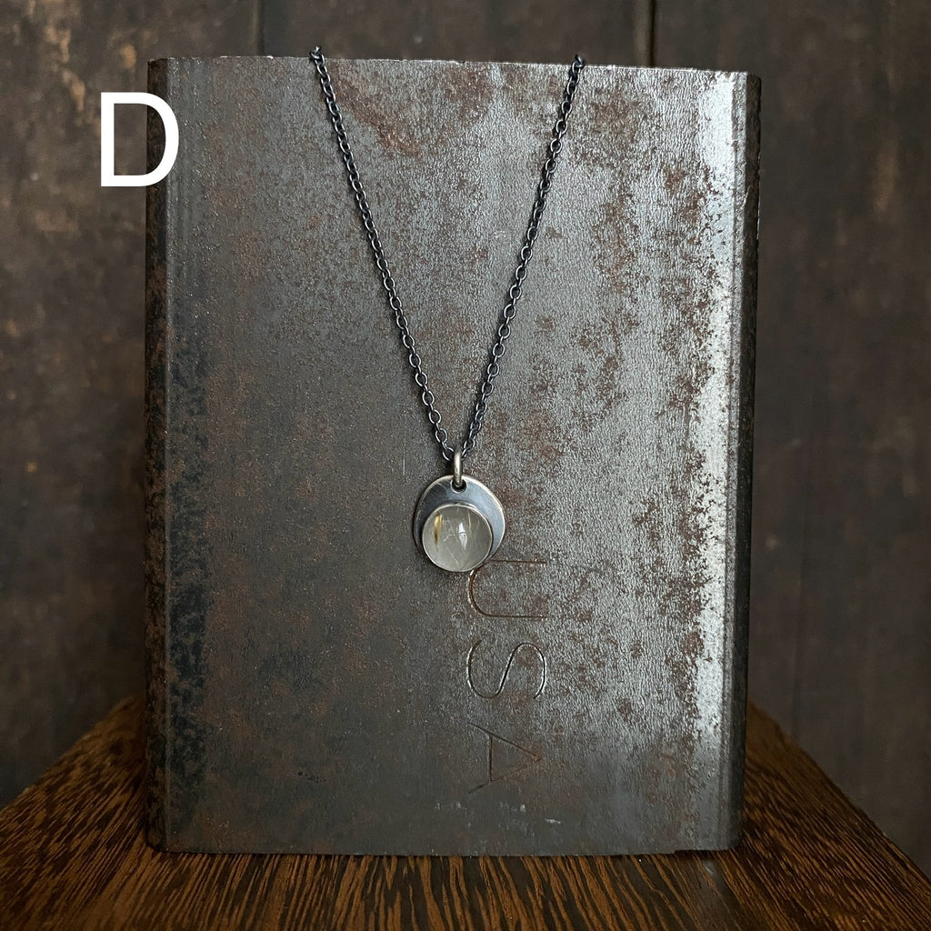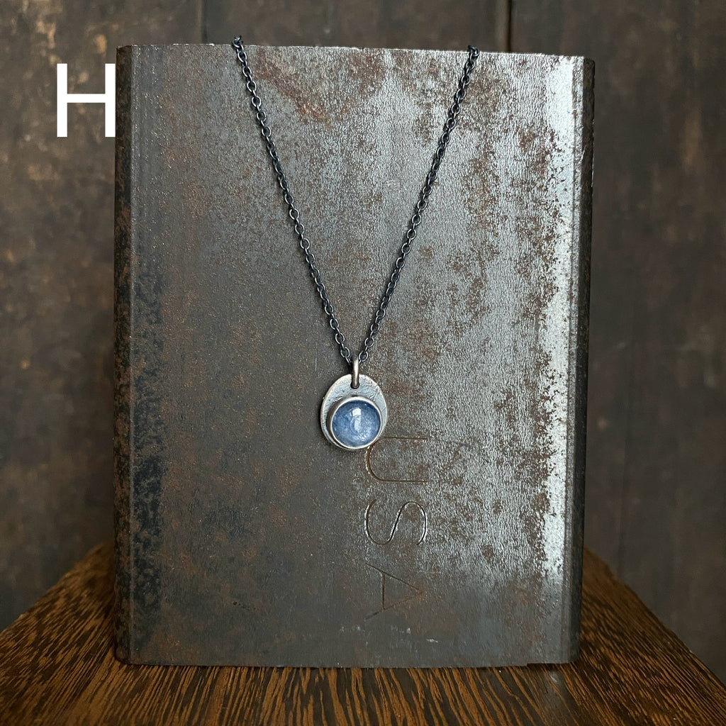 Just a simple gemstone pendant crafted from recycled sterling silver. A staple for any jewelry collection. The gemstone cabochon measures 8mm in diameter.